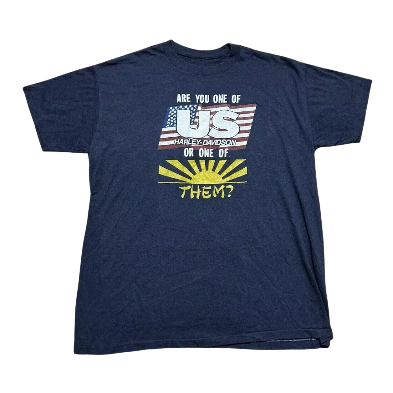 Vintage 70s 80s Harley Davidson “ You One Of Us Or Them ” Jap Bike Shirt Large