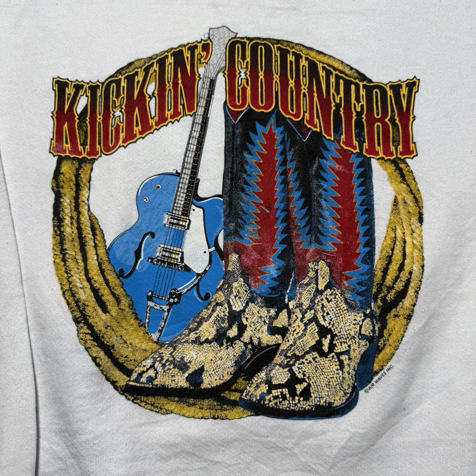 Vintage 90s Airwaves Kicking Country Western Cowboy Boots Sweatshirt Size Large